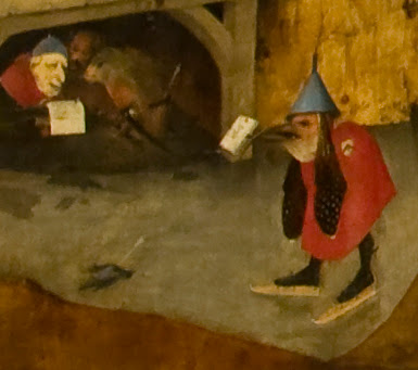 Where does this monstrosity posing as a postal worker come from, if not from the very depths of Hell, and which sinister message is it delivering? One is instantly reminded of something out of a Hieronymus Bosch painting, and in fact, it is!